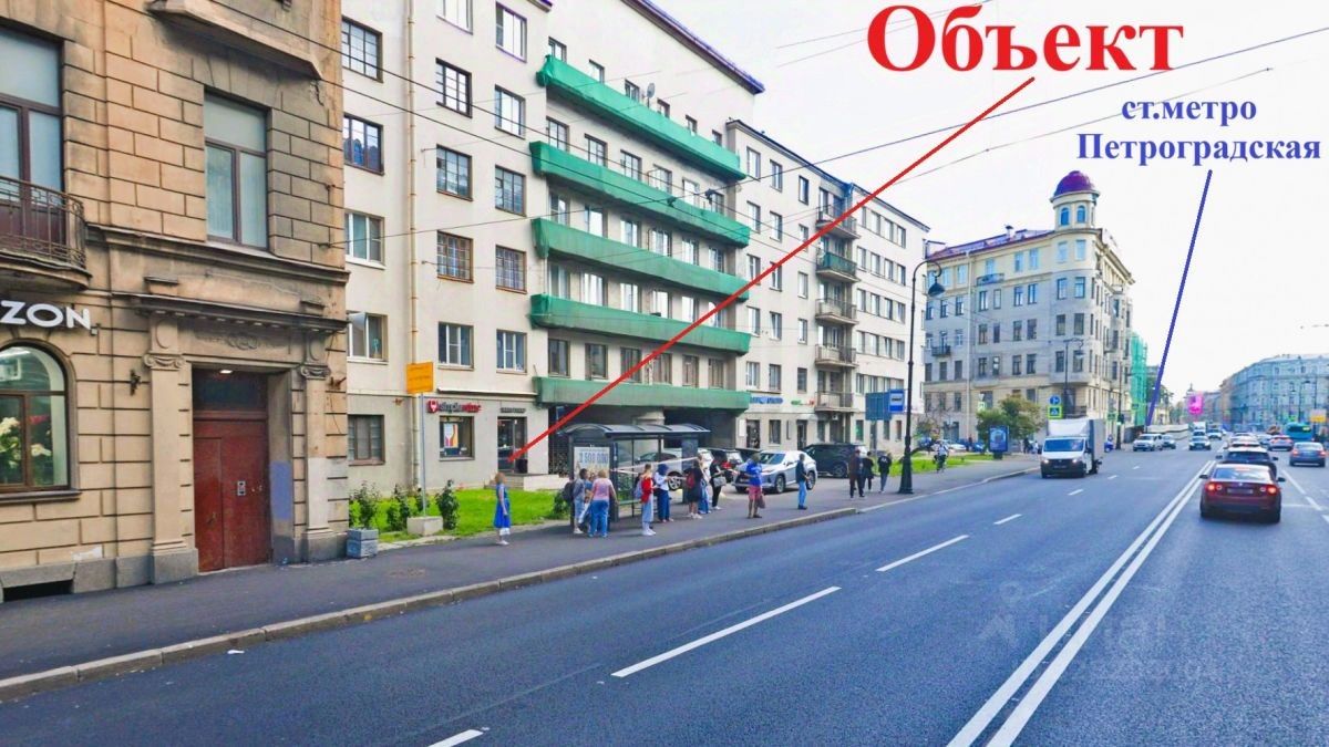 Петроградский район центр досуговой и деловой жизни города. Активный пешеходный и автомобильный трафик, очень высокая покупательская способность! Сразу напротив остановка общественного транспорта