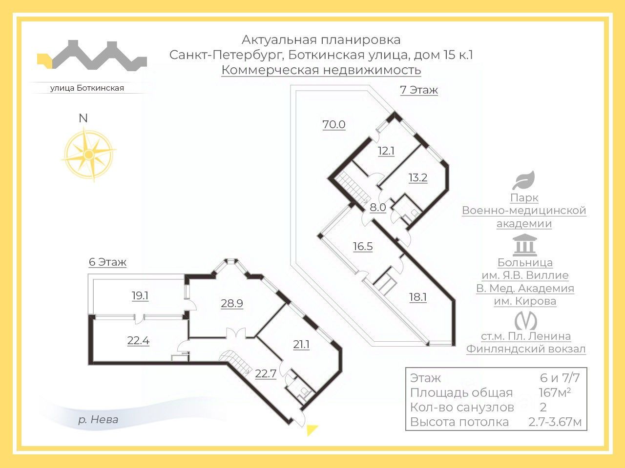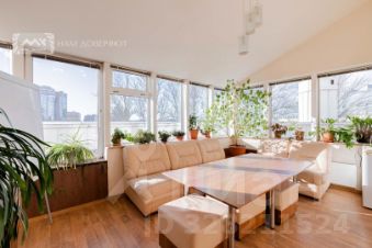 Офис - двухэтажный, расположен на последних двух этажах, имеет 7 кабинетов и 2 потрясающие террасы площадью 70 м2 и 20 м2.