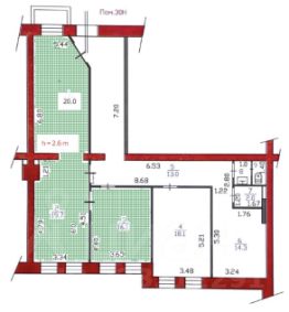 Площадь — 55,8 м². Помещение расположено на первой линии, с окном. Находится в новом жилом доме. Выполнен качественный ремонт, помещение полностью готово к работе.