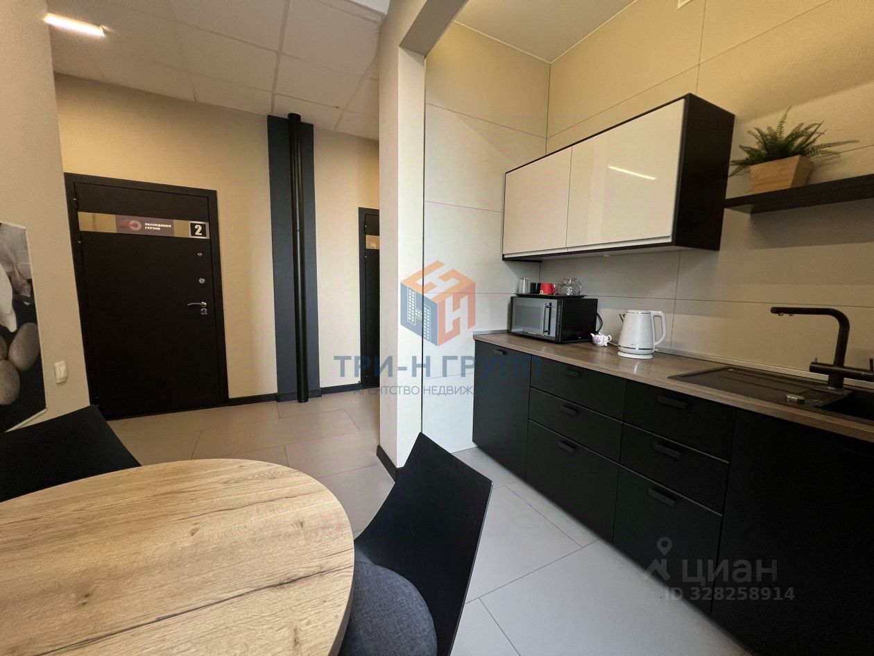 На этаже есть зона кухни, микроволновка, стол обеденный и стулья.