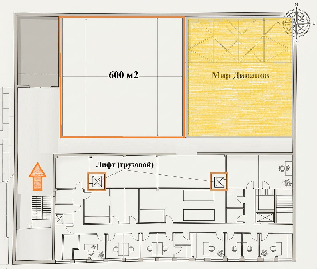 Отдельный вход с улицы, 2 грузовых лифта с цоколя.