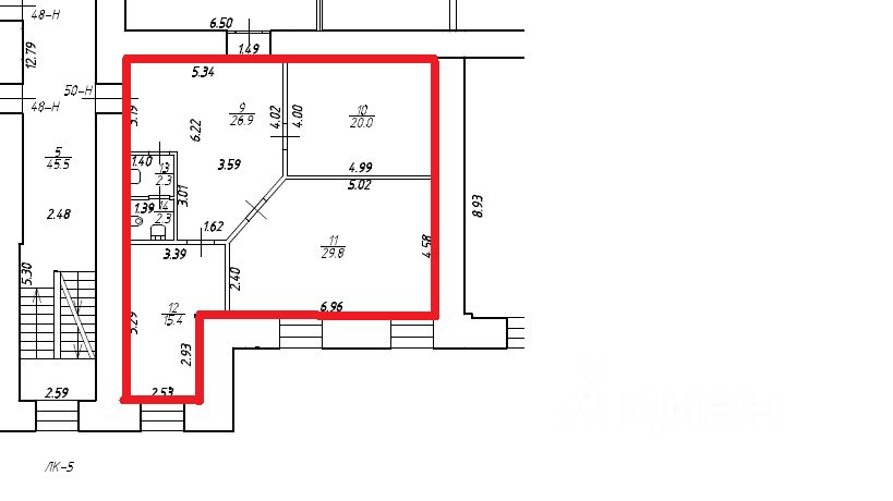 Часть помещения 50-Н (комн. 9-14), расположенной на 2 (Втором) этаже Здания, площадью 96,7 (Девяносто шесть целых семь десятых) кв.м.