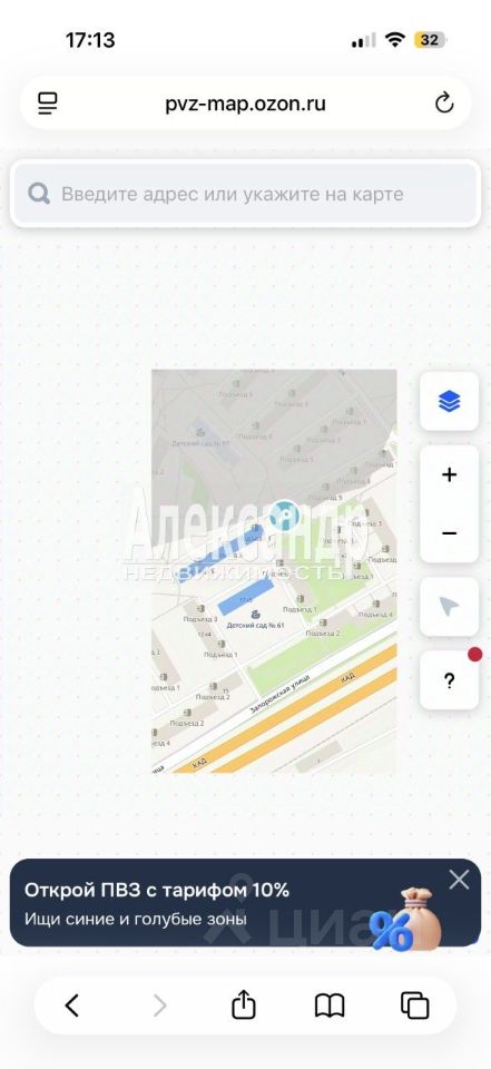 Зона свободна для открытия пункта выдачи Озон,