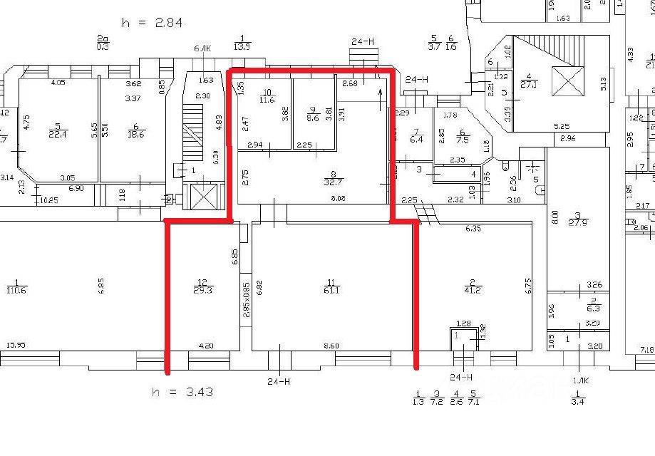 Высокие потолки 3,43 м.