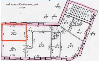 Без комиссии. С 17 апреля сдается светлое офисное помещение 23,3 м² на 2 этаже в историческом здании на наб. канала Грибоедова, 99.