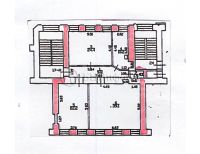 Кабинетная планировка, состоит из 3 комнат различной площади. Имеется санузел, небольшое помещение под архив или склад. Полностью оборудованная кухня.