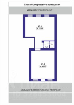 Сдается в аренду коммерческое помещение напротив дома LEGENDA Сампсониевский 32 в 5 минутах пешком от метро Выборгская . Помещение с отдельным входом с улицы площадью 90 м.кв.. Помещение расположено на первом этаже . Вход и два окна на Большой Сампсониевский . Три окна во двор. Коммерческое помещение состоит из двух помещений: первое площадью 41 м.кв. (высота потолка 3.5 метра), второе 45 м.кв. (высота потолка 3.3 метра). Также есть отдельно санузел с раковиной. Окна и входная дверь новые. Помещения под чистовой ремонт. В санузле выполнен чистовой ремонт и установлена сантехника. Есть парковка за шлагбаумом во дворе напротив дворовых окон помещения для нескольких автомобилей .
