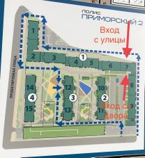 в второй вход (со двора) расположен рядом с одной из двух арок,через которую проживающие будут попадать на территорию внутреннего двора.