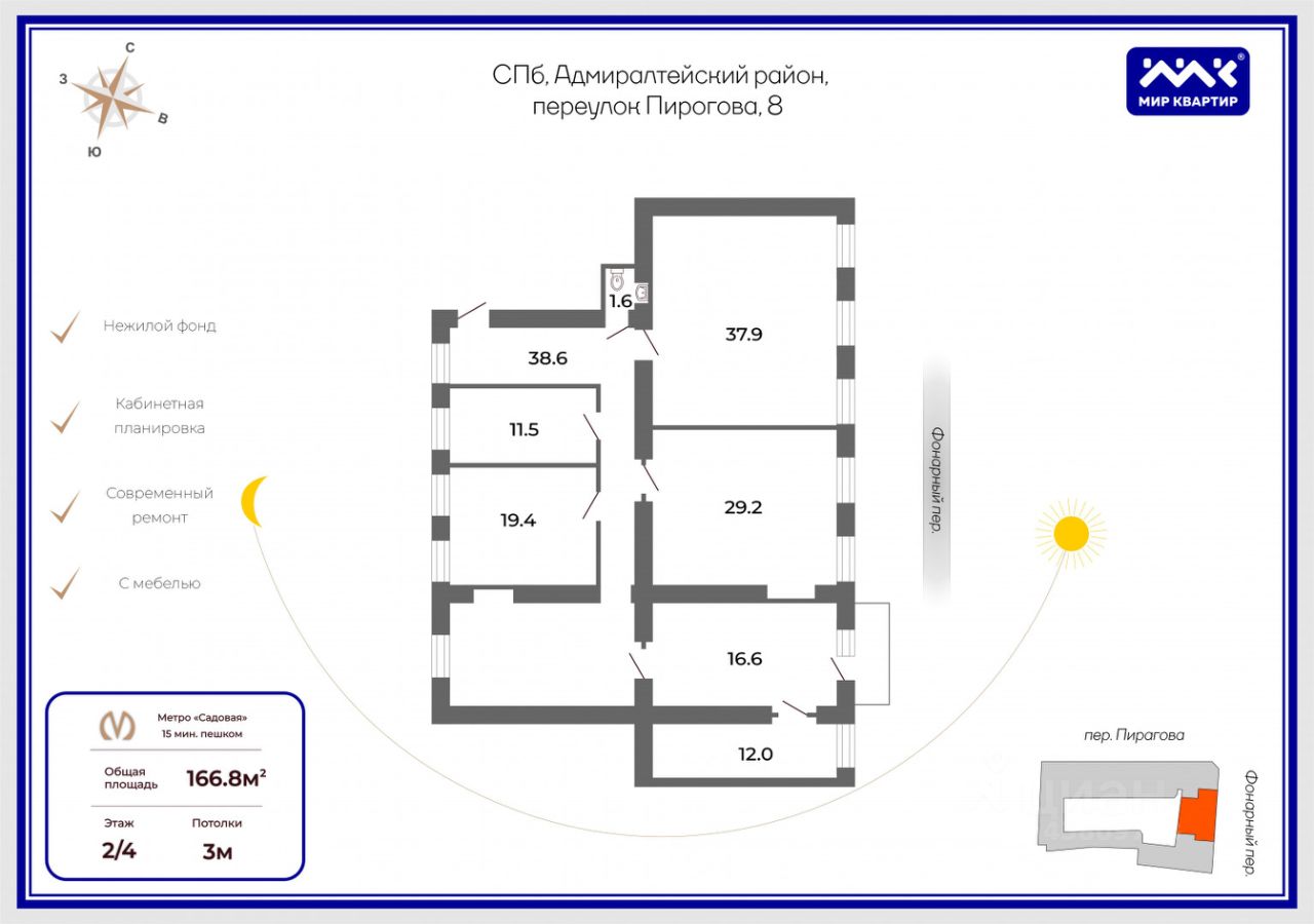 Пешая доступность до метро Сенная, Садовая.