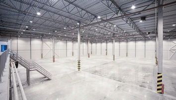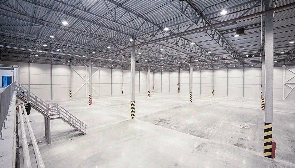 Бетонный пол с антипылевым покрытием, допустимая нагрузка на пол 4 тонны на м2.