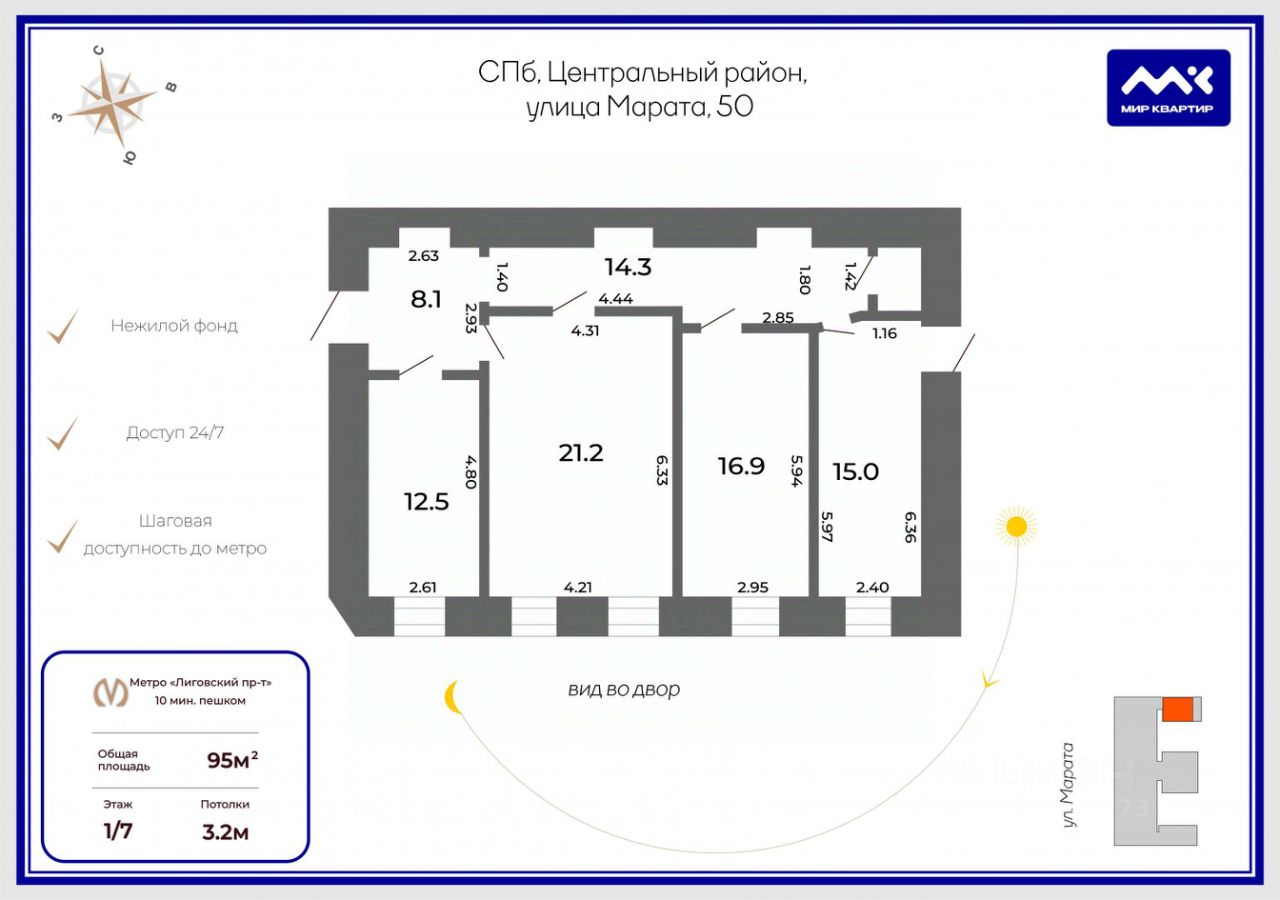 Пешая доступность до метро Лиговский пр. 10 минут.