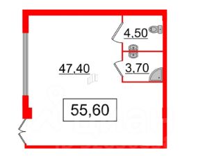 • Общая площадь 55,6 кв.м.