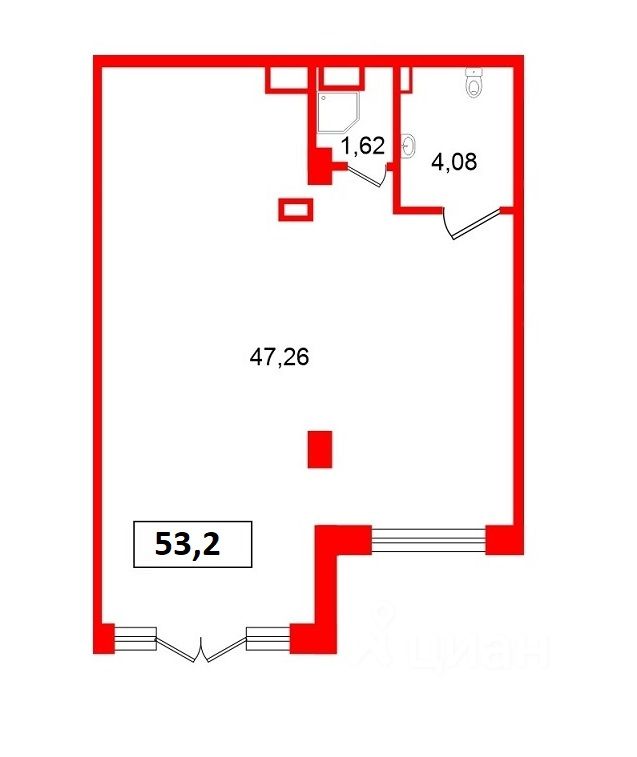 • Общая площадь 53,2 кв.м.
