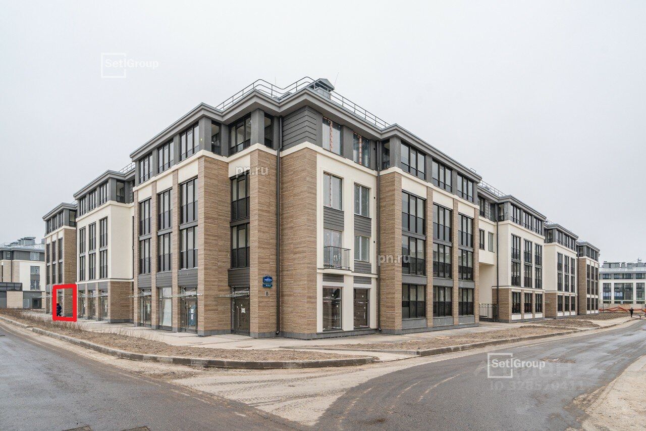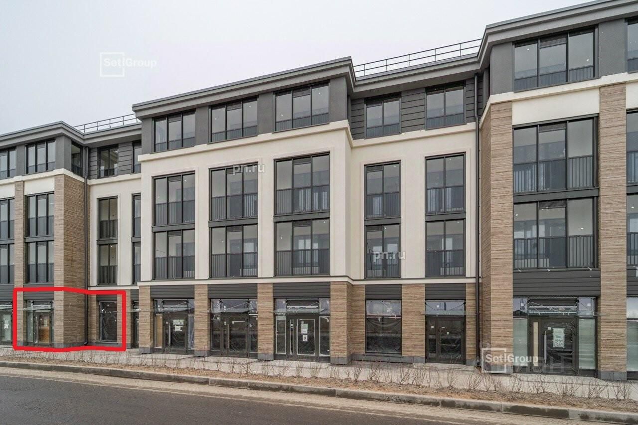 Торговое помещение с главного фасада в новом корпусе ЖК Дворцовый фасад, проспект Будённого, 18к2