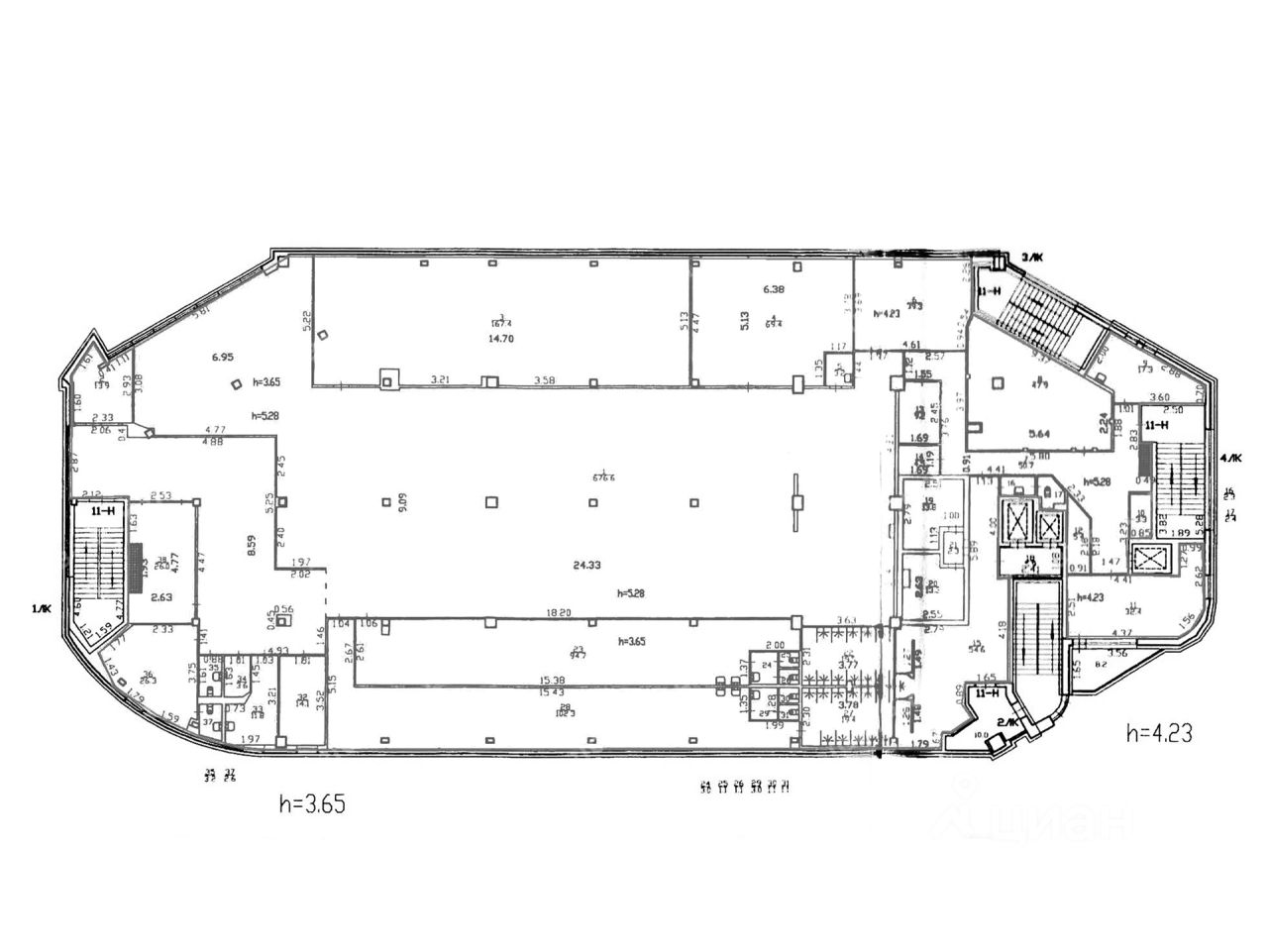 - Высота потолков: 3.65 м, 4.23 м, 2.8 м, 3 м;