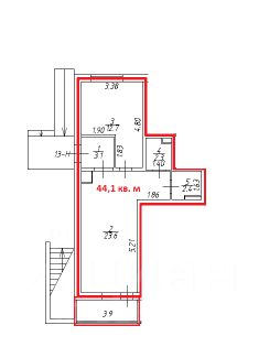 Площадь 44,1 м2 + лоджия 3,29 кв.м