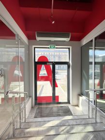 Помещение с отделкой, кабинетная система, оборудованы зоны банкоматов, касса, отдельное помещение для депозитария с ячейками.