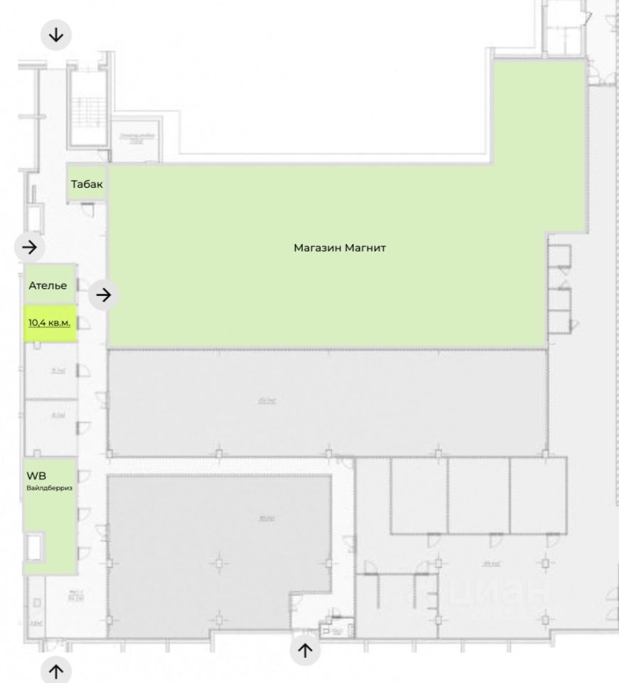 Два входа с противоположных улиц + соседи Магнит, ВБ , Ателье и Табак — поток покупателей гарантирован.