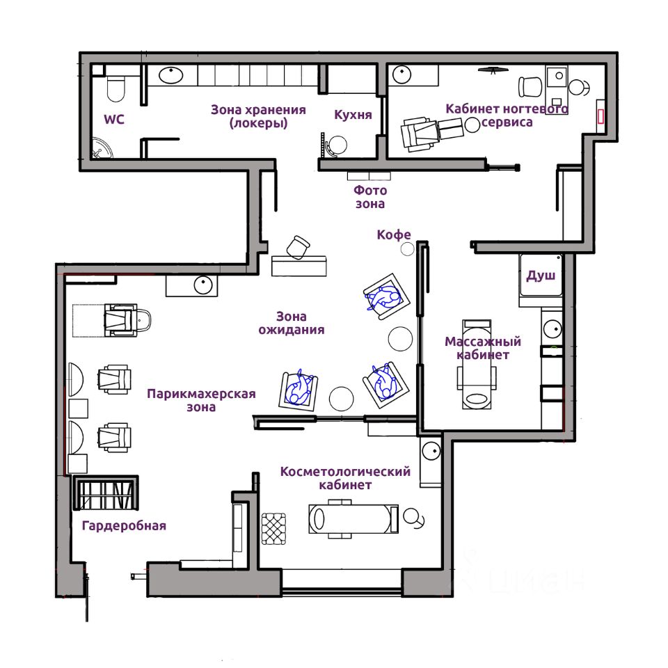 В салоне: 3 изолированных кабинета и рабочее место для маникюра, зона ожидания, СУ, зона для хранения вещей, кухня.