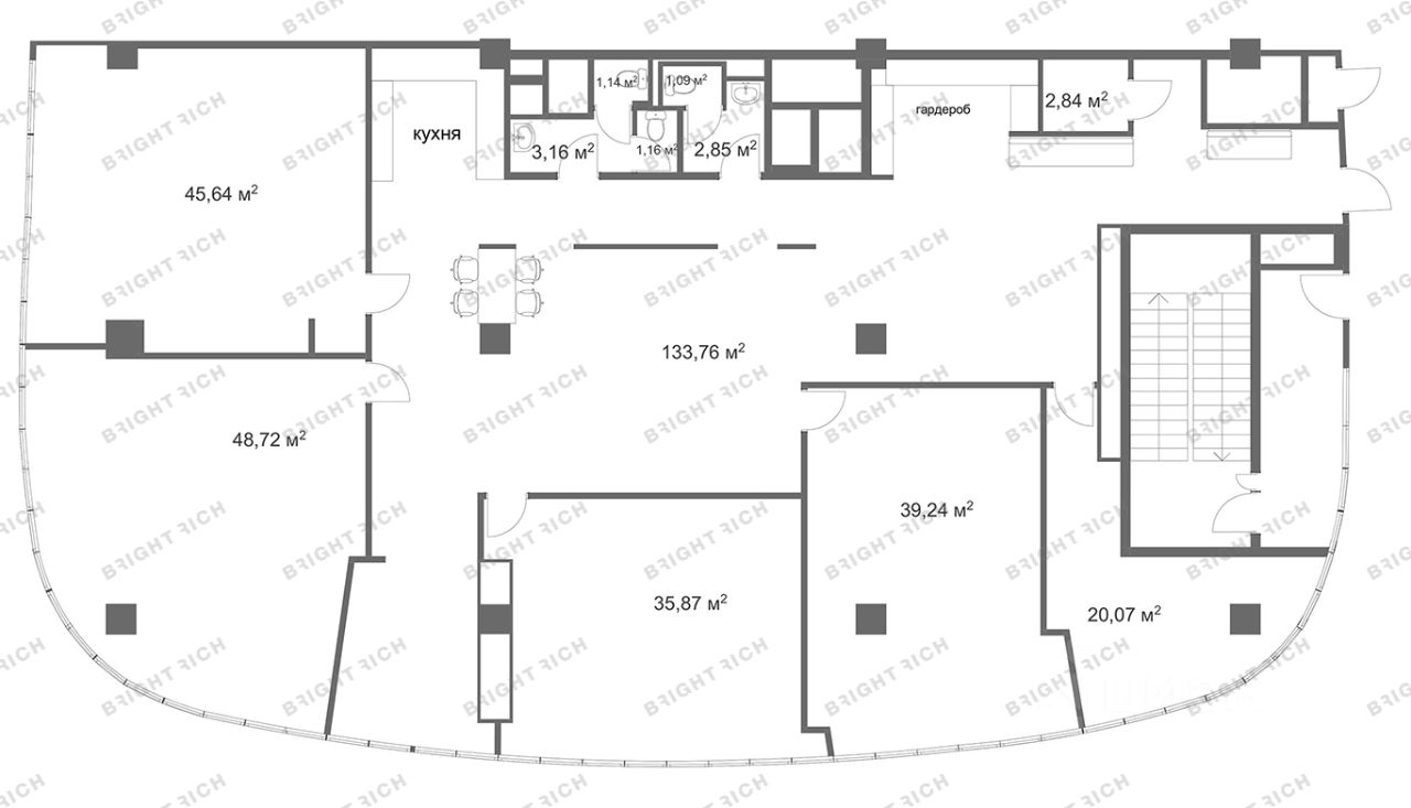 • Планировка: open space, кабинеты, переговорные, кухня, с/у