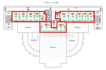 Кабинетная планировка, двенадцать кабинетов + кухня (площадь от 8 м.кв. до 20 м.кв.). Санузел.