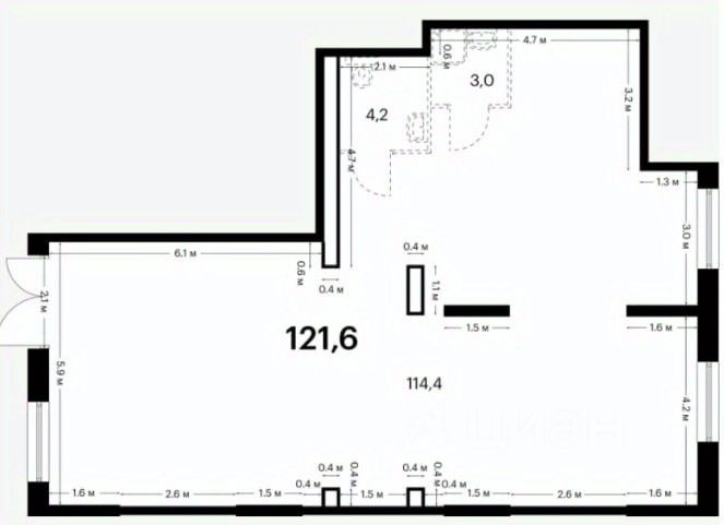 Есть возможность субаренды разной площади - от 30 до 121 метров