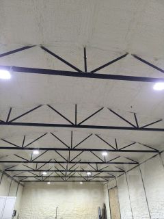стены - сплошной напыляемый утеплитель 150 мм, обшивка - ПРОФлист