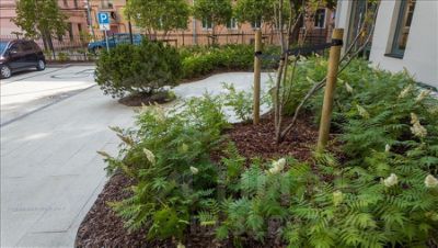 Земельный участок перед фасадом — возможность устройства летней веранды или столиков