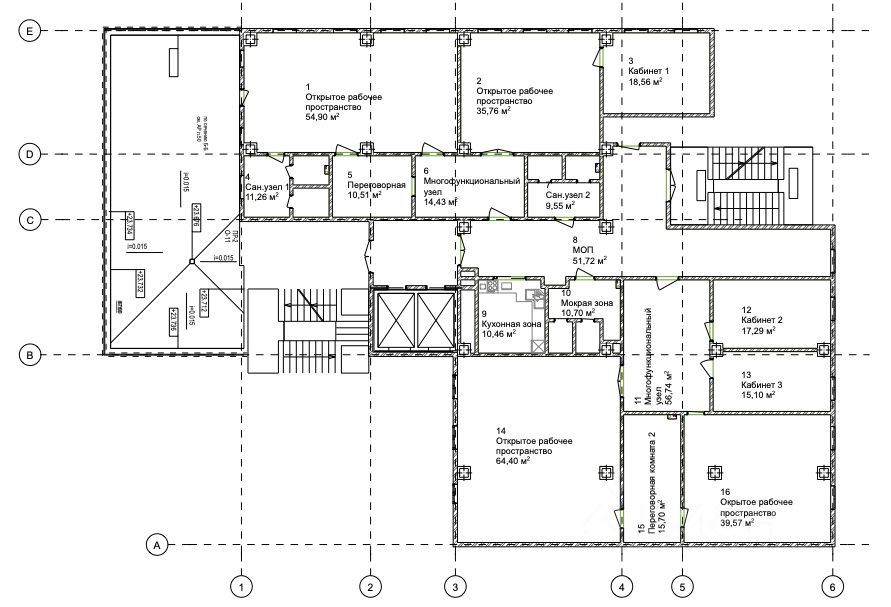 • Продуманная планировка: Open-space, кабинеты, переговорные, кухня. Адаптация под любую команду.