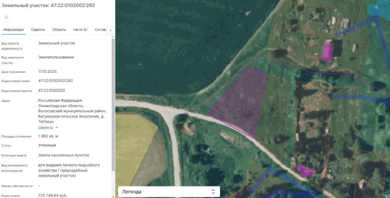 Земельный участок с кадастровым номером 47:22:0102002:282, площадью 1982 кв.м.