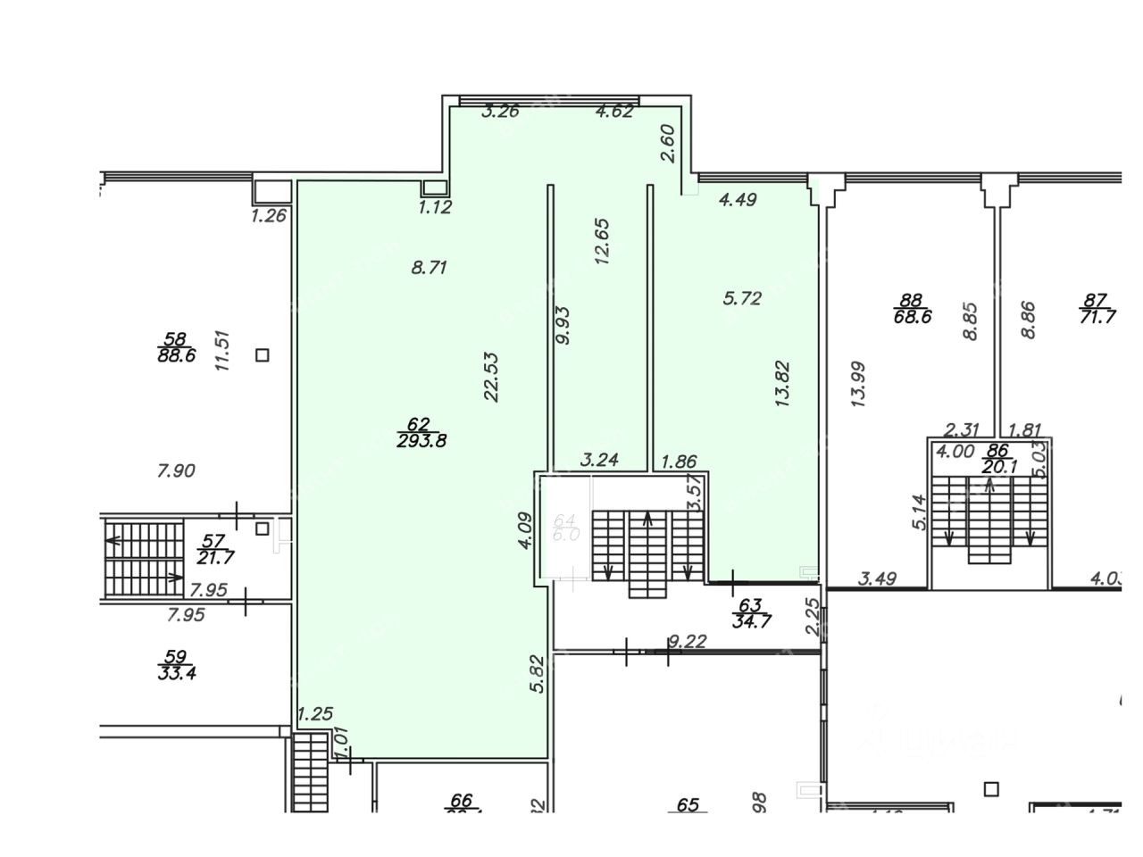 - Размер типового этажа: 1030;