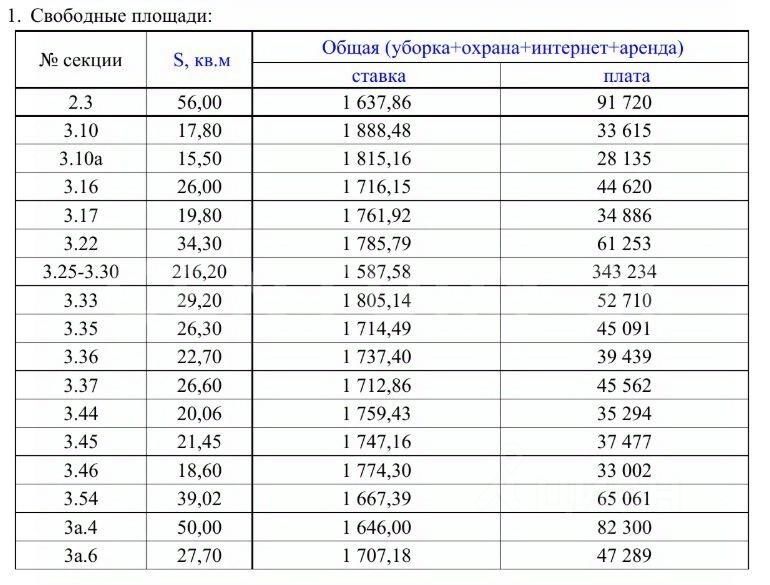 Стоимость услуг охраны 100 руб/кв.м/мес (отдельный договор).