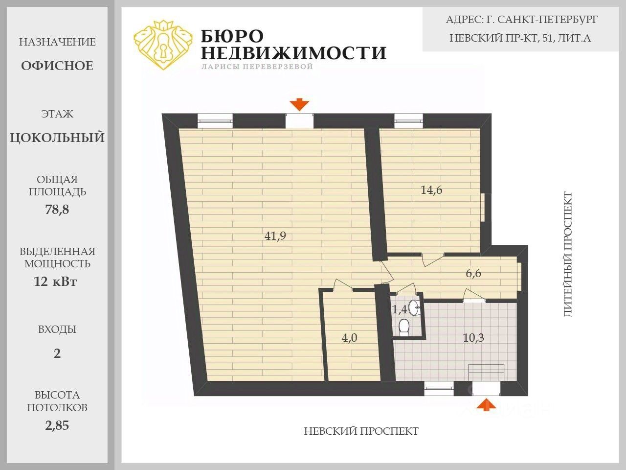 Сдаётся помещение 78,8 м² в центре СПб | 2 входа | Невский пр.