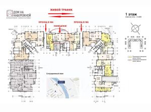 Помещение прямо по центру большого ЖК. Объект находится на трафике, между двумя основными проходами в жилой комплекс.