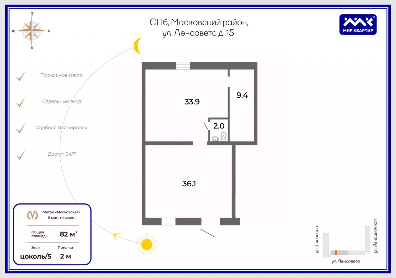 До метро Московская 5 минут пешком.