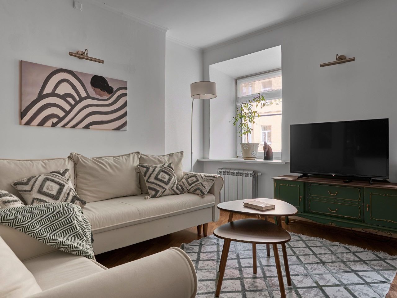 В квартире сделан дизайнерский ремонт, Полностью меблирована, и укомплектована всем необходимым для комфортного проживания.. Есть все необходимое для комфортного проживания Вся бытовая техника, посудомоечная машина, стиральная машина,вся бытовая техника,кабельное ТV,(высокоскоростной интернет. Окна выходят в закрытый двор.Второй этаж. Зелёный двор.До Дворцовой площади и Эрмитажа 5 минут. Все исторические достопримечательности и парки в 5 минутах от квартиры.До метро Невский проспект и Адмиралтейская 8 минут пешком.