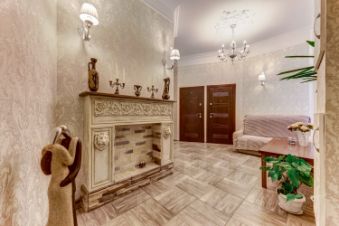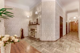 Наши апартаменты находятся на одном этаже, имеют общий Холл с классическим камином.