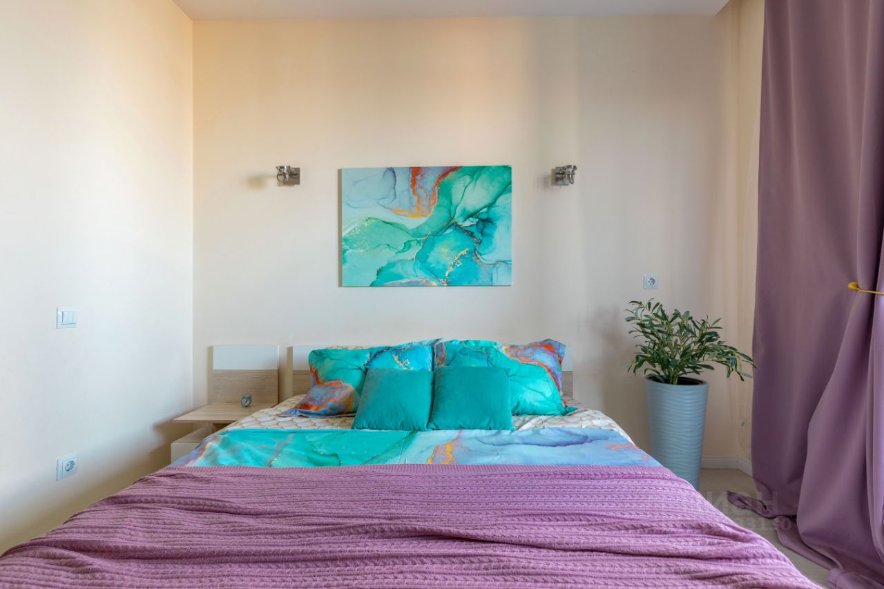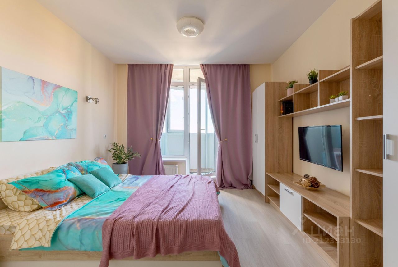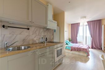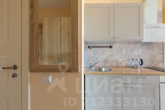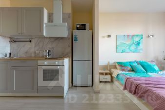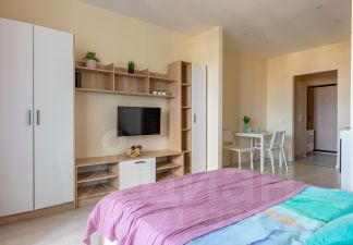 Красивая квартира-студия, в которой имеется вся необходимая для комфортного проживания мебель и бытовая техника, а также посуда и столовые приборы.