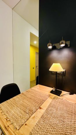 Лаконичный дизайнерский ремонт. В прихожей большой вместительный шкаф-купе для одежды. Двуспальная кровать с матрасом Ikea. Рабочий стол, wi-fi.