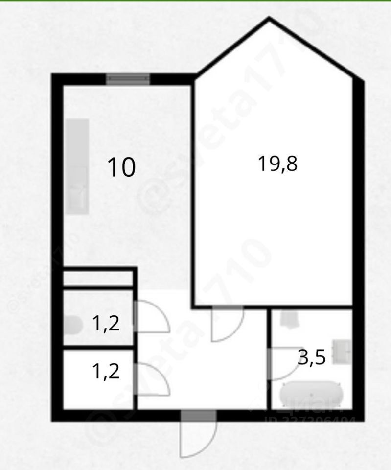 Общ пл. 36 кв м в кирпичном доме с эркером*