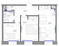 - спальня (большая кровать 160 x 200) / кухня-зал (раскладной диван на два места) / спальная (одна кровати 90 x 200)