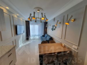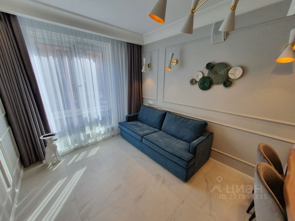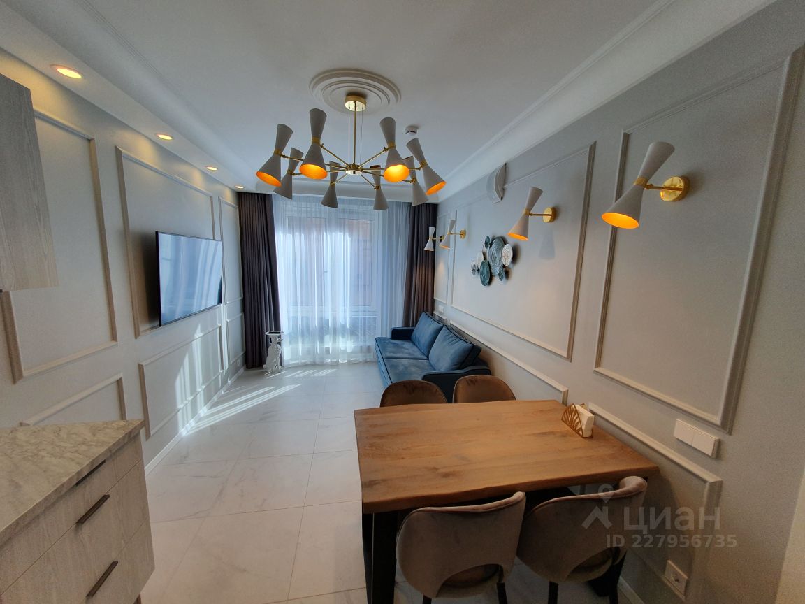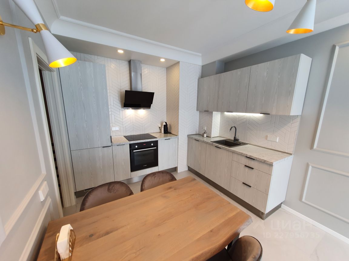 Просторная кухня и спальня, большие панорамные окна в сочетании с современным дизайнерским ремонтом.