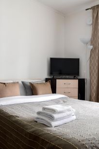 - Бoльшая двуcпальная кровать и дивaн-кpовaть;