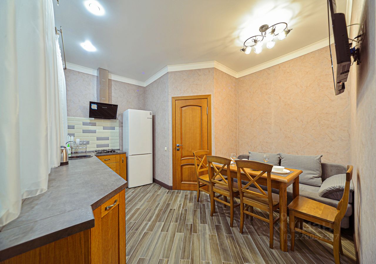 кухня-гостиная с обеденной зоной и всей необходимой техникой, включая посудомоечную машину;