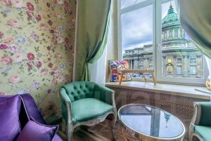 Добро пожаловать в апартаменты с лучшим видом в городе- Русский Балет! Дом, в котором находится номер, буквально пронизан историей балета, т. к. В 18-19 веках в этом доме находились учебные классы императорского балета. Юные балерины репетировали, одновременно вдохновляясь величественной панорамой Казанского собора.