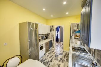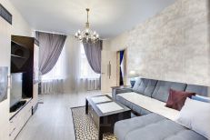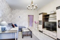 Трехкомнатная квартира после косметического ремонта, с двумя изолированными спальнями и проходной гостиной. Кухня полностью оборудована : посудомоечная машина, духовой шкаф, микроволновка, холодильник, стиральная машина, обеденный стол. В гостиной раздвижной угловой диван (200 х 150), телевизор (будет стоять с плоским экраном 42 дюйма), приставка смарт ТВ, Wi-Fi. В одной спальне раздвижной диван (200 х 140) в другой двуспальная кровать (200 х 160).