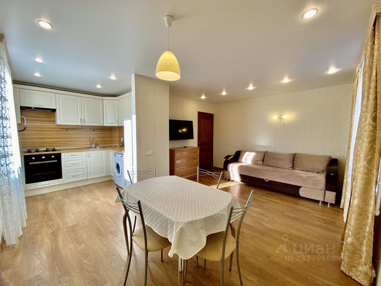 3) В гостиной два окна - невероятно солнечно, что видно даже на фото. Игра света благодаря подсветке - когда нужно уютно, а когда и романтично.