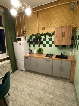 Кухня(изолированная, 10 кв.м, кухонная мебель, плита, холодильник, утюг, мультиварка
