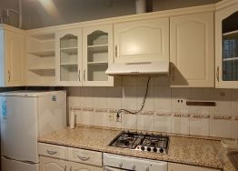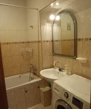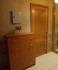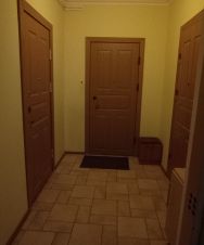 Квартира теплая, чистая, ламинат, стеклопакеты, двойные двери, предбанник на 3 квартиры отделен общей дверью. В квартире есть необходимая мебель и бытовая техника. Большая комната 26 м2 имеет нишу, куда помещается двуспальная кровать, в комнате 2 окна. Кухня просторная 12 м2.