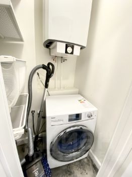 В квартире установлена приточная-вытяжная система вентиляции для установки микроклимата в каждой комнате. Есть кондиционер. Стиральная машина с функцией сушки, встроенная гардеробная. Полы с подогревом, бойлер. Отдельная постирочная комната.